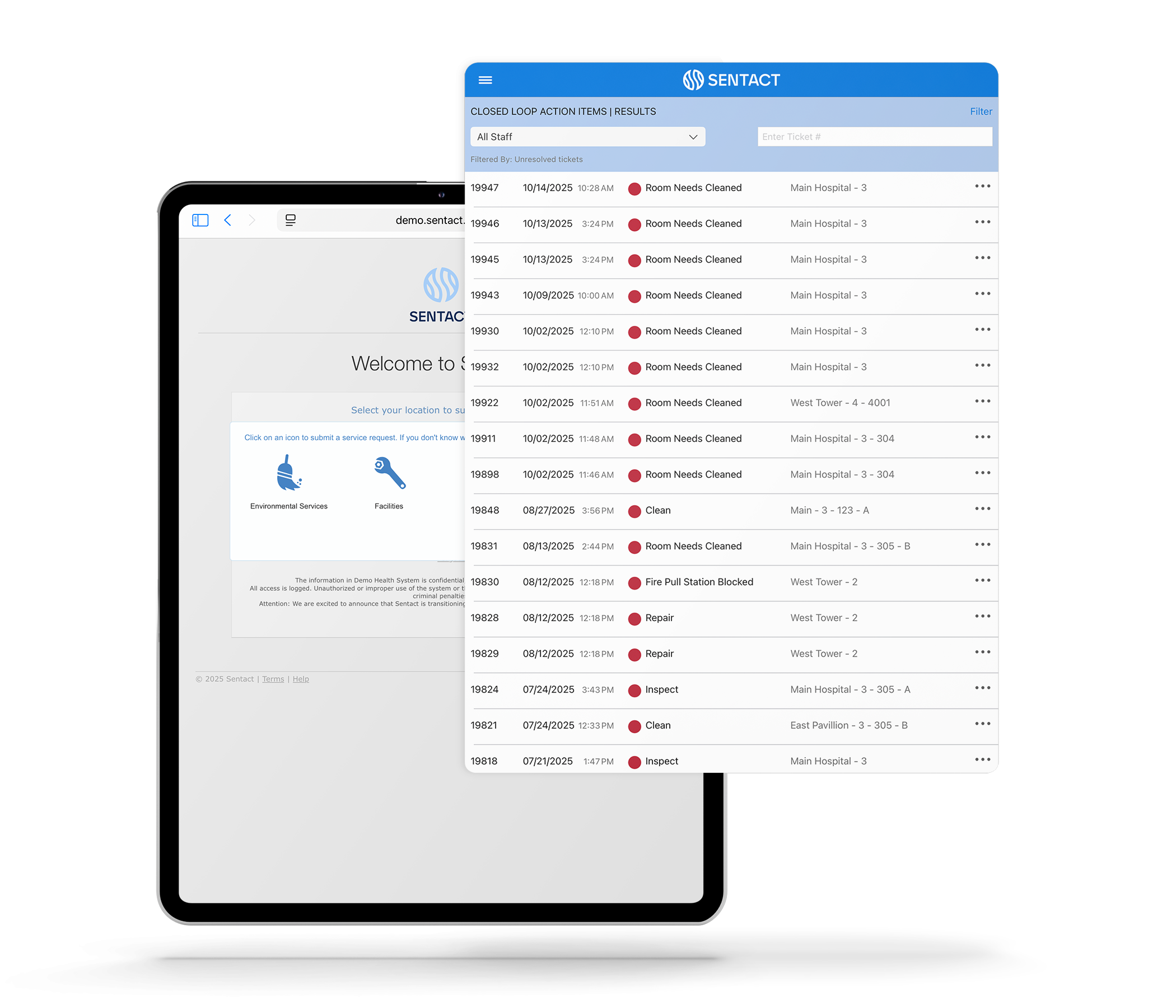 Every day, hospitals face hundreds of small but critical issues that slow operations. Sentact’s OnDemand virtual service center lets staff report problems in seconds, routes them automatically, and ensures fast resolution, while giving leadership a real-time view into patient safety and satisfaction.